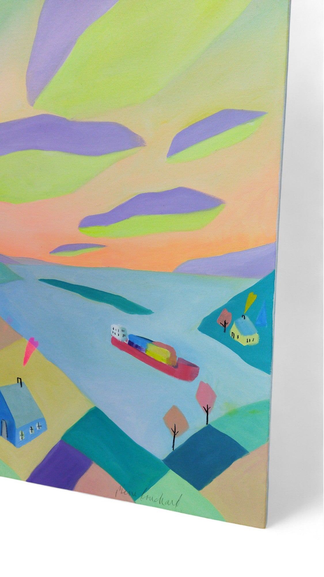 Discover Cargo dans la baie, a work that captures the vibrant essence of the sea. With its playful color choices and impressive artistic presence, this painting invites both escape and contemplation. Each brushstroke evokes a harmonious dance between shades, creating an atmosphere that is both soothing and energizing.