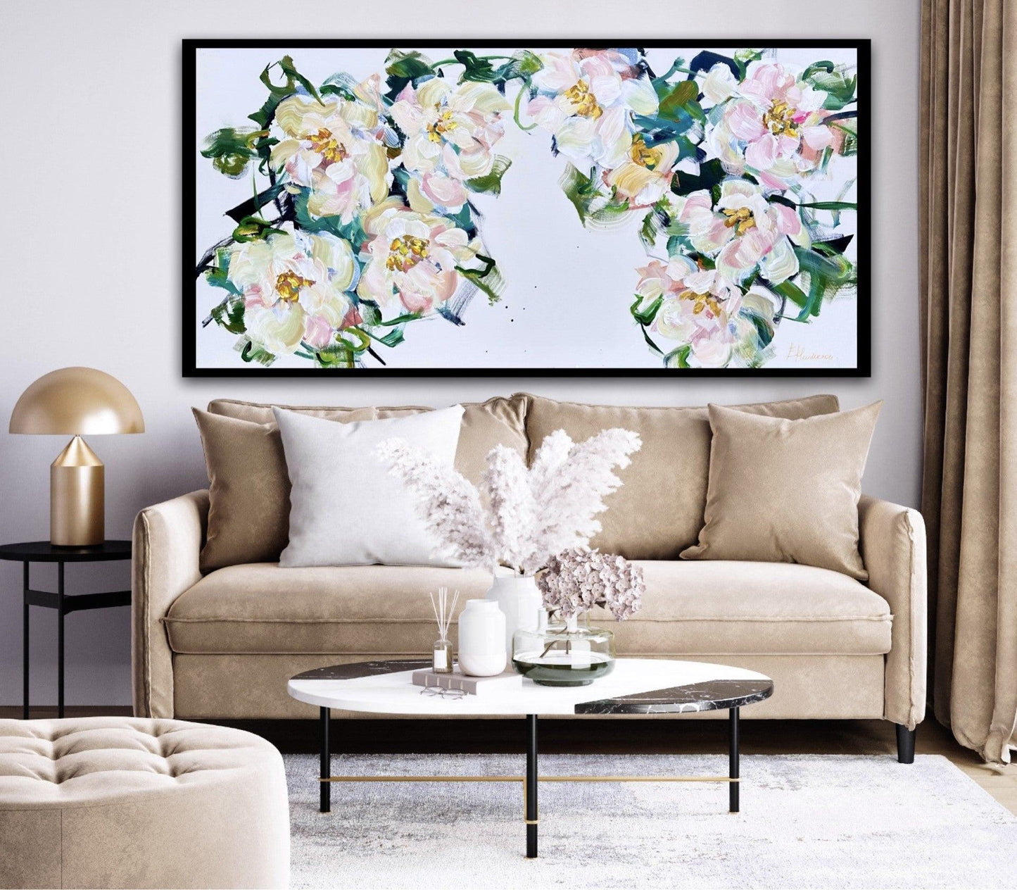 Want a free realistic preview in your space? Whether it's with the sample rooms or your own photo, email us at info@galeriebeauchamp.com. We will create a personalized mock-up, using the artwork of your choice directly on a photo of your space.